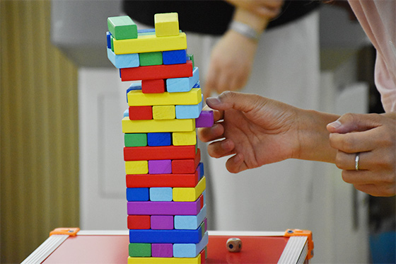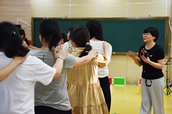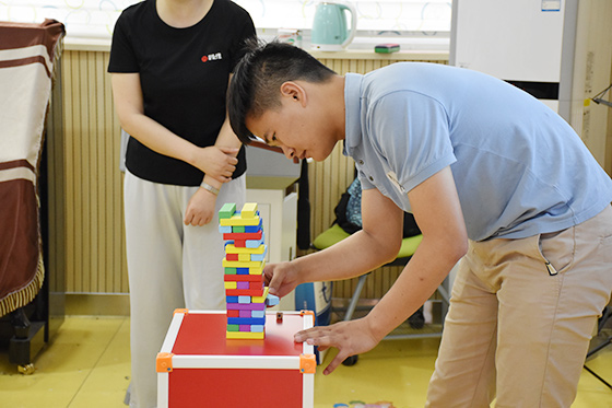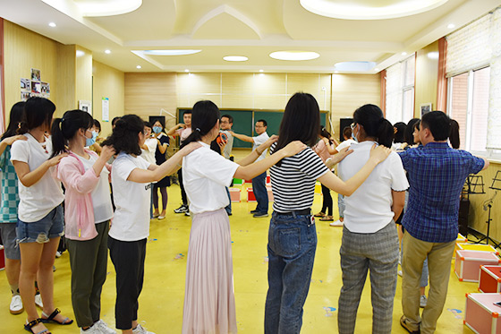 在今天的活動(dòng)中,周老師先從調(diào)動(dòng)情緒氣氛開始。上了一天的課,來到活動(dòng)室的老師們略顯疲憊,周老師用左手撘右手、大風(fēng)吹兩個(gè)小游戲幫助老師活動(dòng)活動(dòng)勞累了一天的身體,并引導(dǎo)大家更好的觀察彼此,看看這些天天與自己一起工作的可愛人兒們;人是社會(huì)性的動(dòng)物,參與到團(tuán)體生活中既是我們的屬性使然,也是我們的需求,團(tuán)體協(xié)作的高效進(jìn)行才能將我們的工作生活指向一個(gè)更好的層面。以團(tuán)隊(duì)解碼和步步驚心兩個(gè)小游戲?yàn)槔蠋焸冎g的傾聽、交流對(duì)游戲能否快速完成極為重要,而在行動(dòng)中將這個(gè)團(tuán)隊(duì)的利益納入考慮范圍,則關(guān)系到游戲是否能繼續(xù)進(jìn)行下去。我們每個(gè)人都是團(tuán)隊(duì)的一部分,而且是不可或缺的一部分。