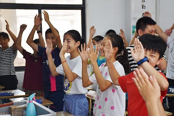六年級畢業(yè)班的孩子們正處于一個特殊而又關(guān)鍵的時期:學(xué)業(yè)上即將從小學(xué)進入中學(xué),青春期將孩子們兒童與成年人的界限模糊,而分離也是孩子們不得不面對的一個課題,所有這些都加在這些孩子的肩上。所以今天課堂一開始,胡老師先用兩個小游戲,將孩子們暫時從這些煩惱和壓力上一開,用輕松和快樂的心情來迎接接下來的課堂。