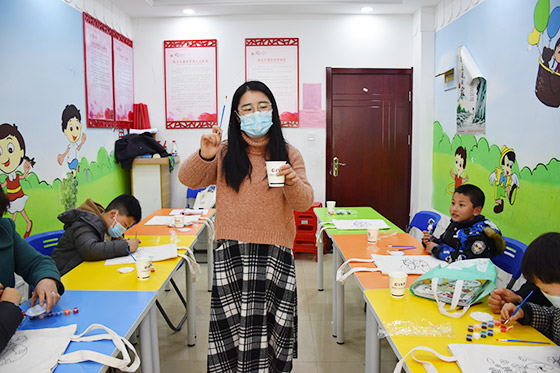 在程老師的提問互動中,孩子們積極舉手表達了自己的想法,并講述了自己和家人在日常生活中是如何用行動來支持環(huán)保的?;顒娱_始,程老師詳細講述了環(huán)保袋的繪畫技巧及注意事項,五顏六色的顏料激發(fā)了孩子們的創(chuàng)作靈感,孩子們紛紛執(zhí)筆上色,盡情在環(huán)保袋上展現(xiàn)自己的想象,經(jīng)過一小時的創(chuàng)作,原本素凈的環(huán)保袋變成了五彩斑斕的時尚包,并紛紛給自己的環(huán)保袋命名。