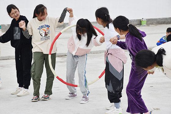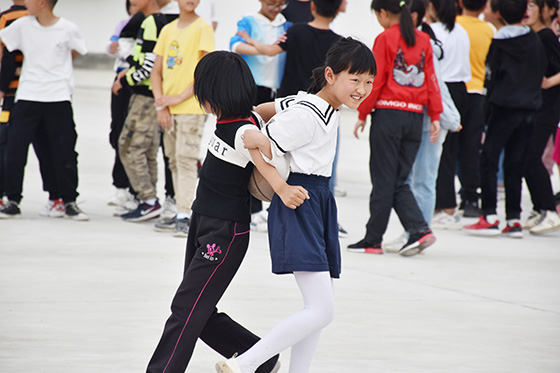 無論是學(xué)習(xí)、人際還是生活,我們都需要與人合作,今天的團輔活動就是圍繞著“合作”這個主題來進行。不同的手掌能夠拍出相同的節(jié)奏嗎?活動開始,胡老師給孩子們提出一個小小的挑戰(zhàn)。胡老師在臺上示范節(jié)奏,孩子們在臺下一起拍手,從一開始的參差不齊到最后的利落收尾,孩子們在游戲中漸漸進入活動狀態(tài);在“木頭人”的游戲中,胡老師用全新的規(guī)則,讓同學(xué)們在這個熟悉的童年游戲中體驗不一樣的新感受;對于籃球,除了傳統(tǒng)的比賽,我們能夠玩出什么新的花樣呢?胡老師通過頭頂傳球、胯下運球、夾背送球等不同方式,創(chuàng)造出不同的玩法,讓孩子們在思考中不斷地體驗合作的重要性;而在最后的傳遞呼啦圈游戲中,胡老師讓同學(xué)們以班級為單位進行任務(wù),讓每一位同學(xué)都充分的參與到游戲當(dāng)中來,在感受集體力量的同時更能感受到自己作為集體的一個部分的重要性。